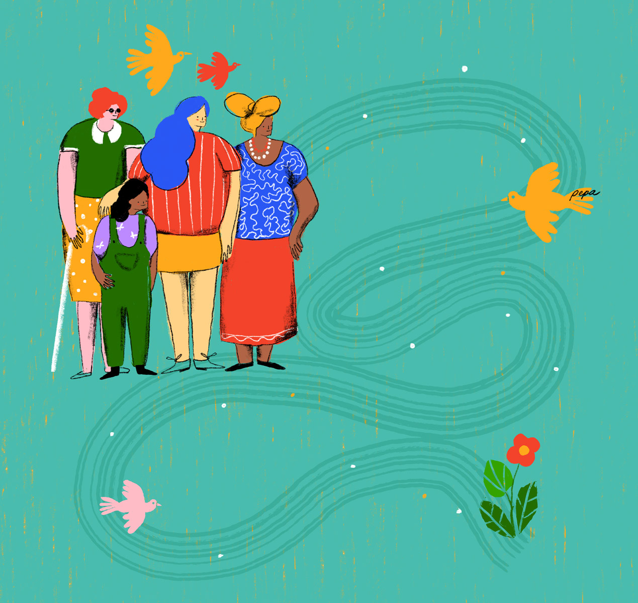 Ilustraciones para el calendario de derechos de las mujeres 2024, comisionado por ONU Mujeres Ecuador.