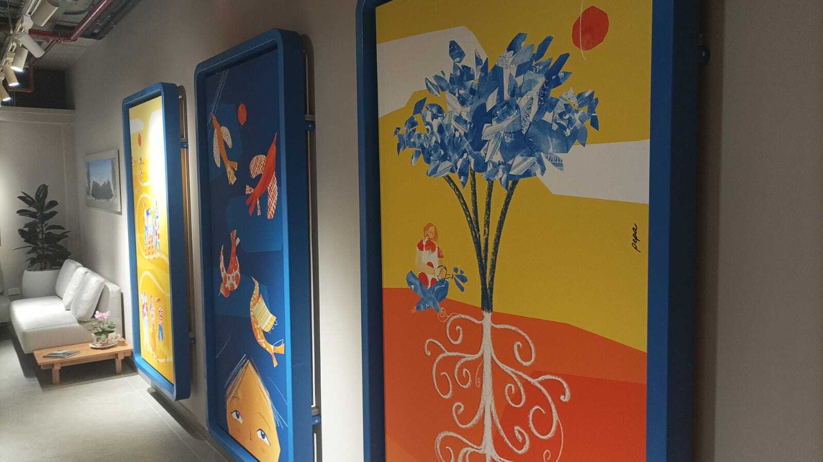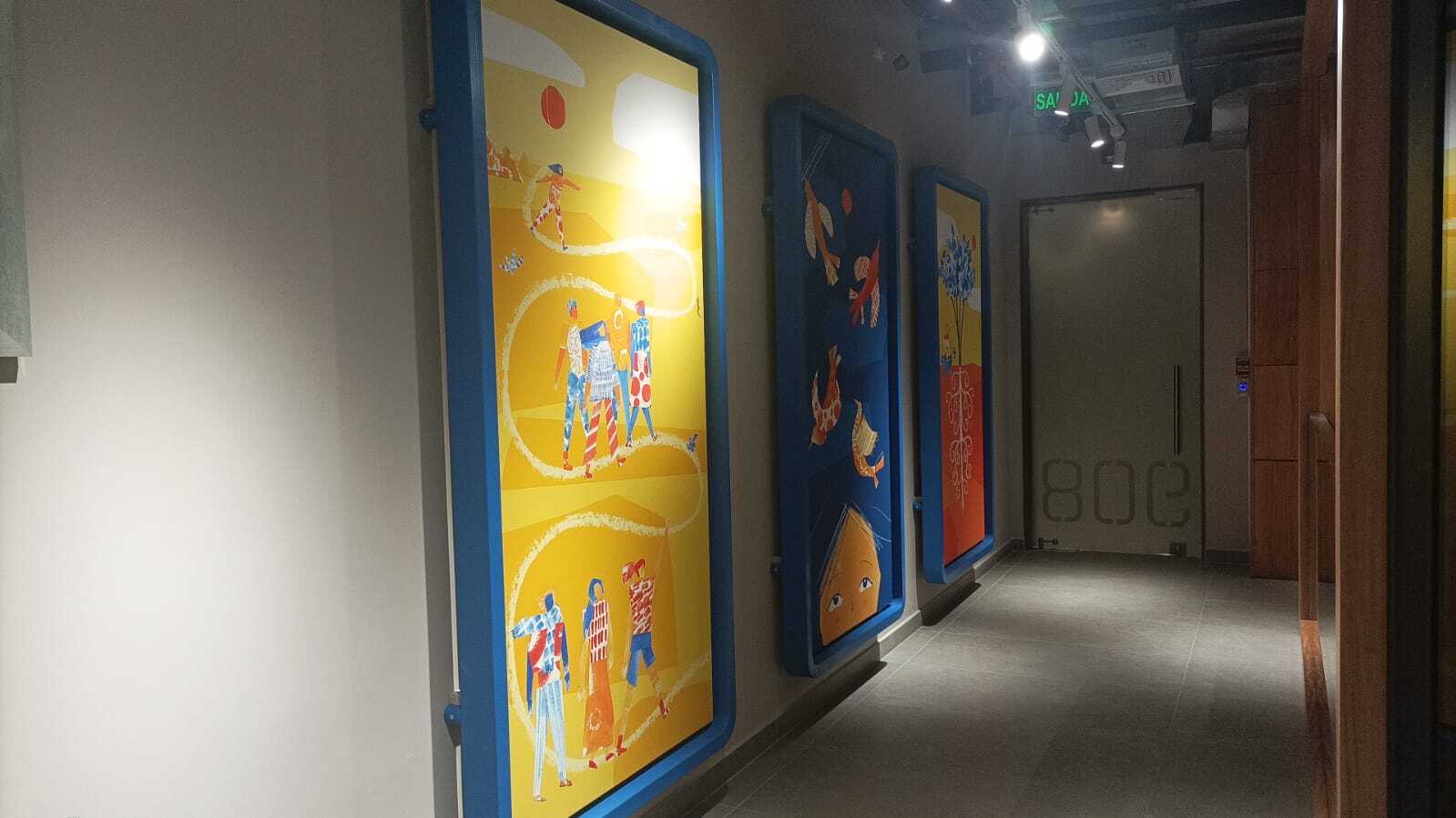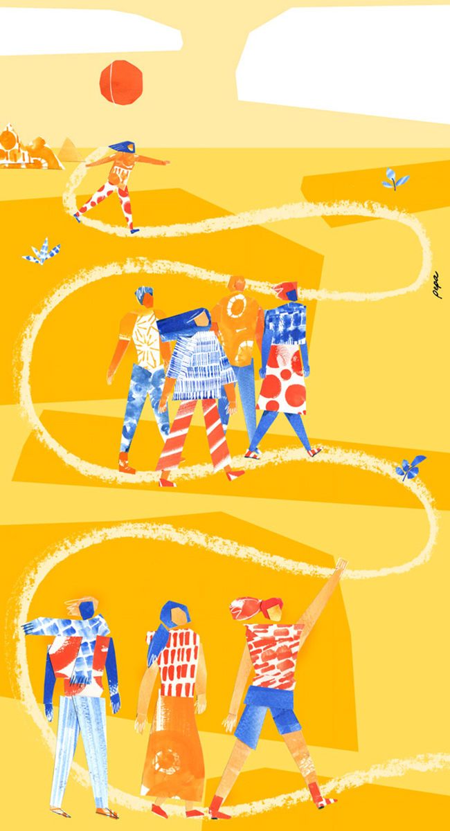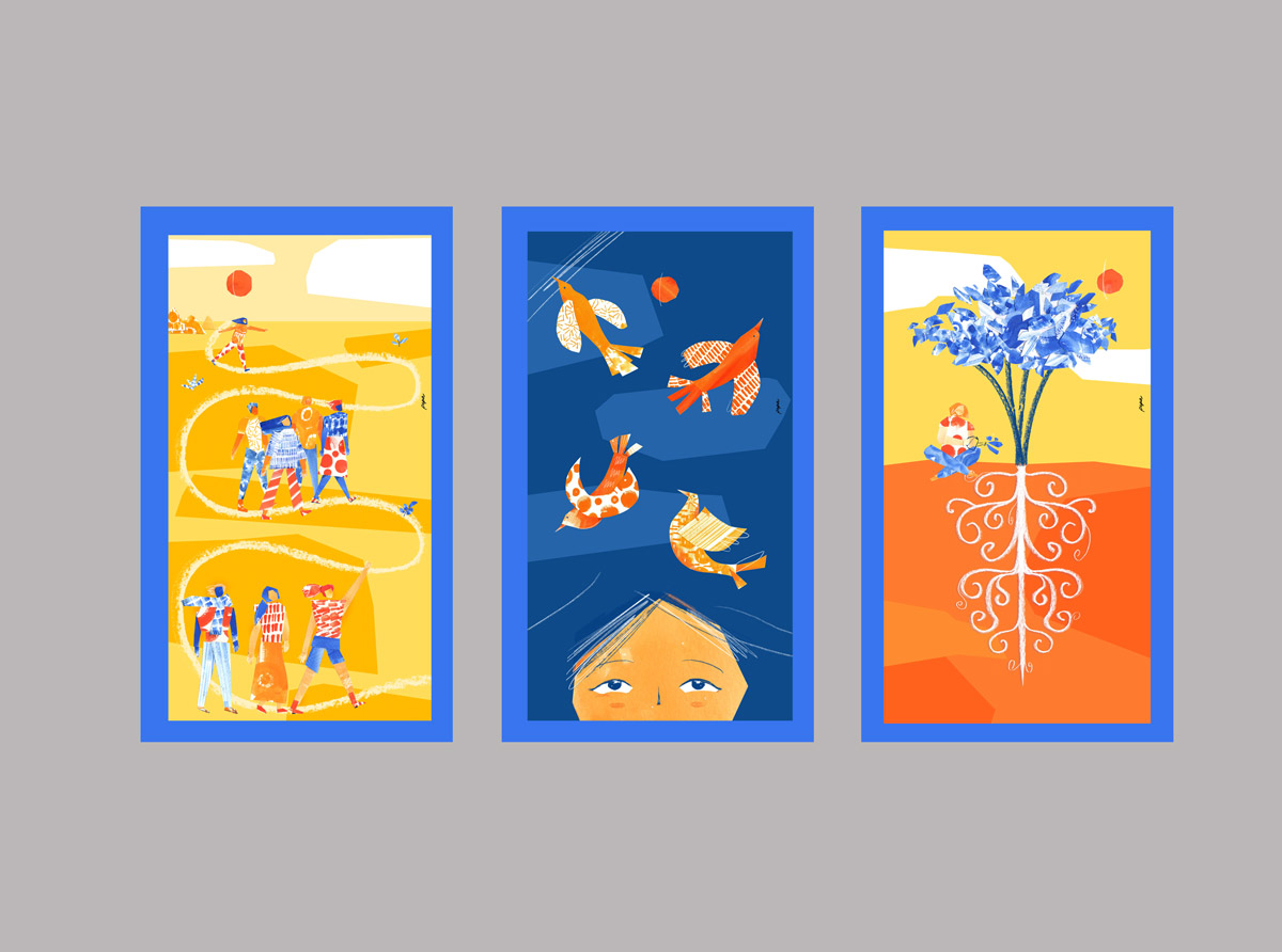 Ilustraciones creadas para las oficinas de la comisión Fulbright en Quito - Ecuador. Estas ilustraciones fueron encargadas con el propósito de representar los valores del programs: historia, comunidad y conexión.
